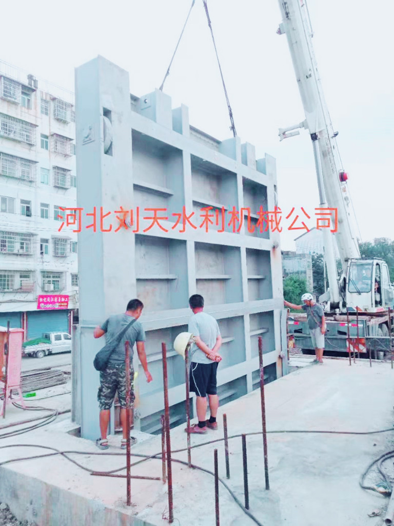 湖南懷化5x6m鋼制閘門、2x2m鋼制閘門順利吊裝完成