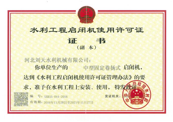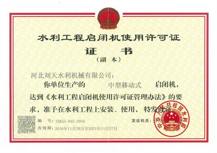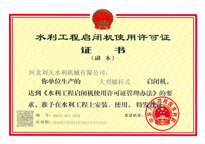啟閉機(jī)使用許可證