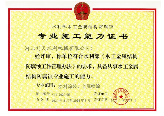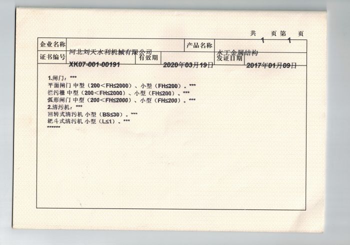水工金屬結(jié)構(gòu)證書(shū)